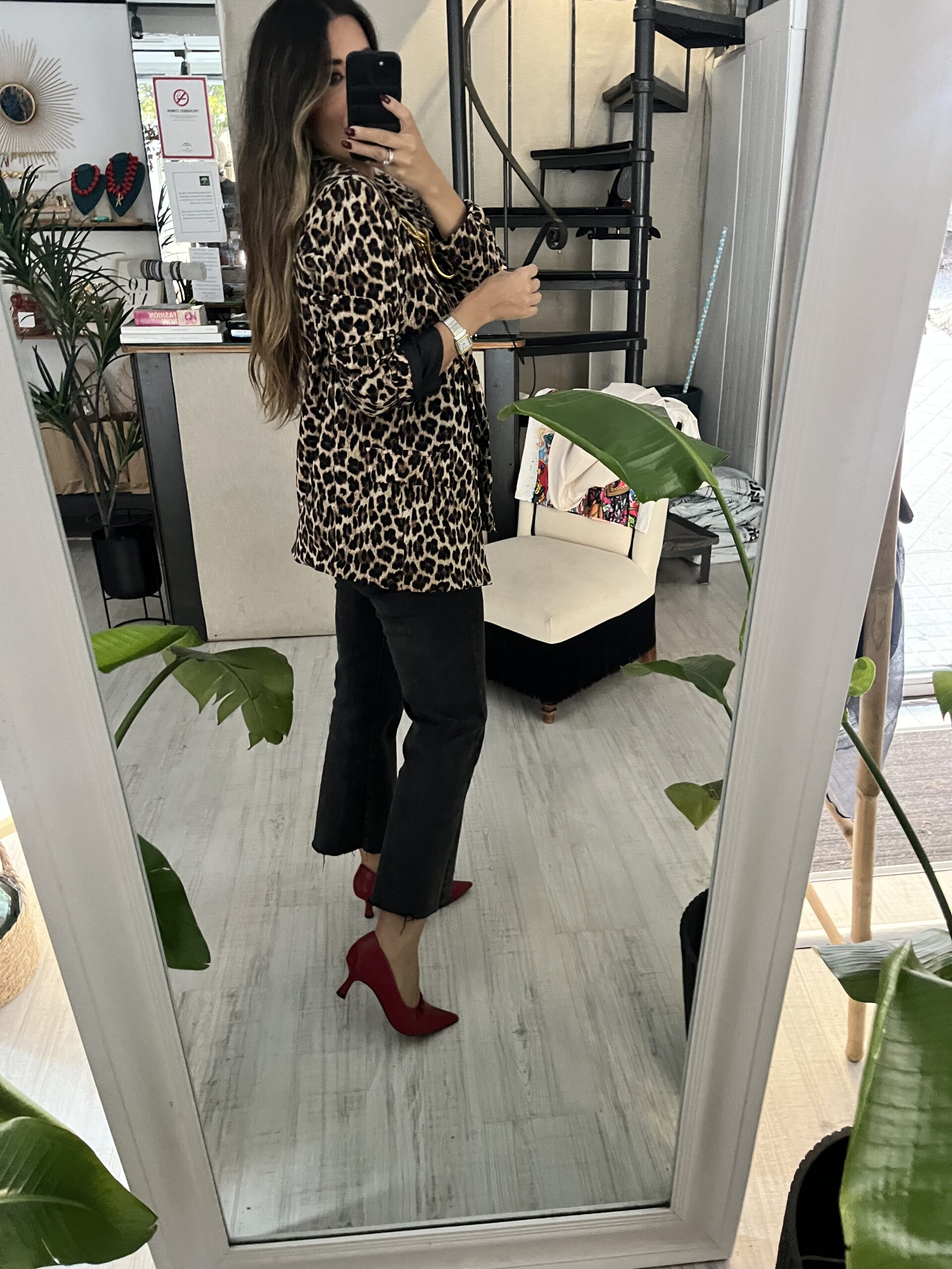 Blazer estampado animal print con tejido elástico.